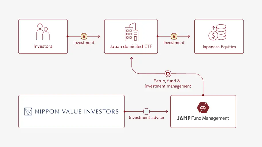 JAMP Fund Management Co., Ltd., a subsidiary of Japan Asset Management Platform Co., Ltd., is pleased to announce that it will provide comprehensive support for Nippon Value Investors KK as the inaugural client of its newly launched ETF White-label Services. The engagement will support the launch and ongoing management of Japan-domiciled active ETF products.
