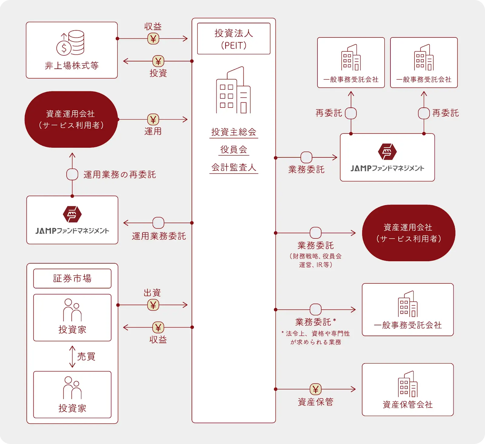 さて、プレスリリースでもお知らせさせて頂きましたが、日本資産運用基盤グループの投資運用子会社であるJAMPファンド・マネジメント株式会社は、このたび投資法人資産運用業の追加登録を完了し、東京証券取引所が上場制度整備を進める「未公開株を投資対象とする証券投資法人(PEIT:Private Equity Investment Trust)」に関し、PEIT事業参入を企図する資産運用会社の事業運営をワンストップでご支援するホワイトレーベルサービスの提供体制の整備を完了しました。