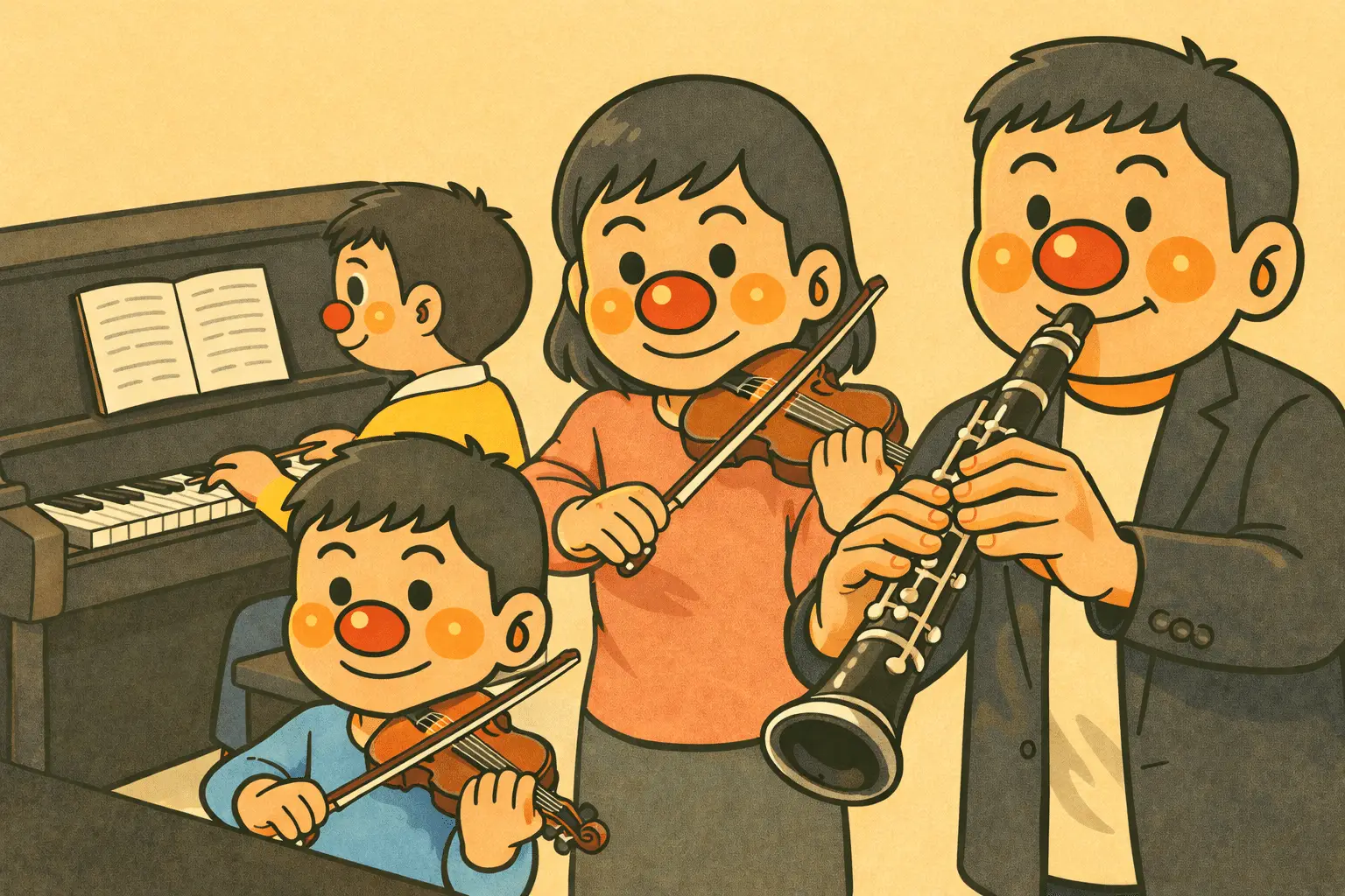 ChatGPTが作成してくれた「みんなで楽器を演奏する大原ファミリー」です