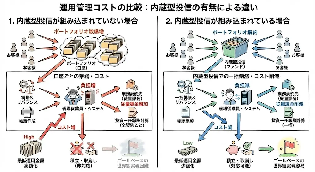 「投資一任報酬内蔵型投信活用モデル」ではシステム・業務負担が軽減する効果も