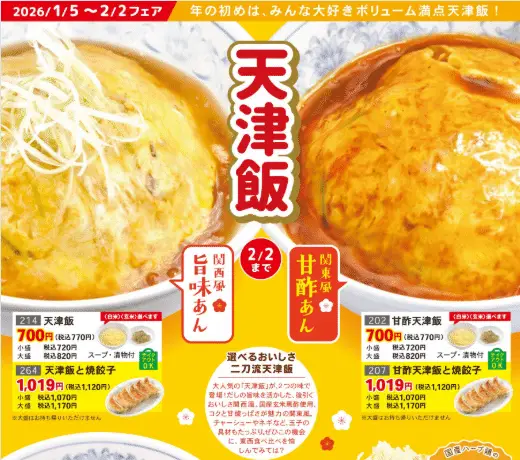 新企画では2種類の天津飯を選ぶことができます
