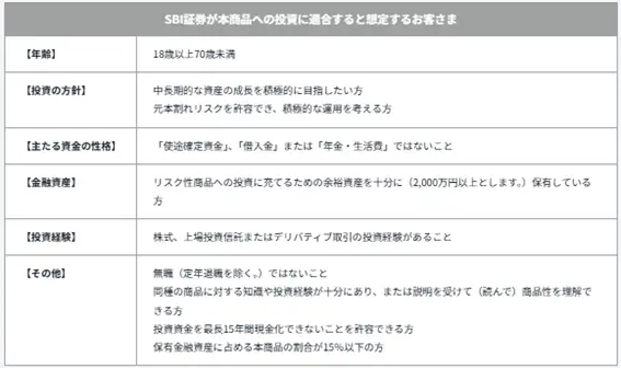SBI証券が設けている独自の適合性基準(同社HPより)