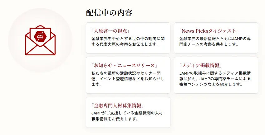 毎週日曜日22時にJAMPメールマガジン「JAMPの視線」を発信しています。