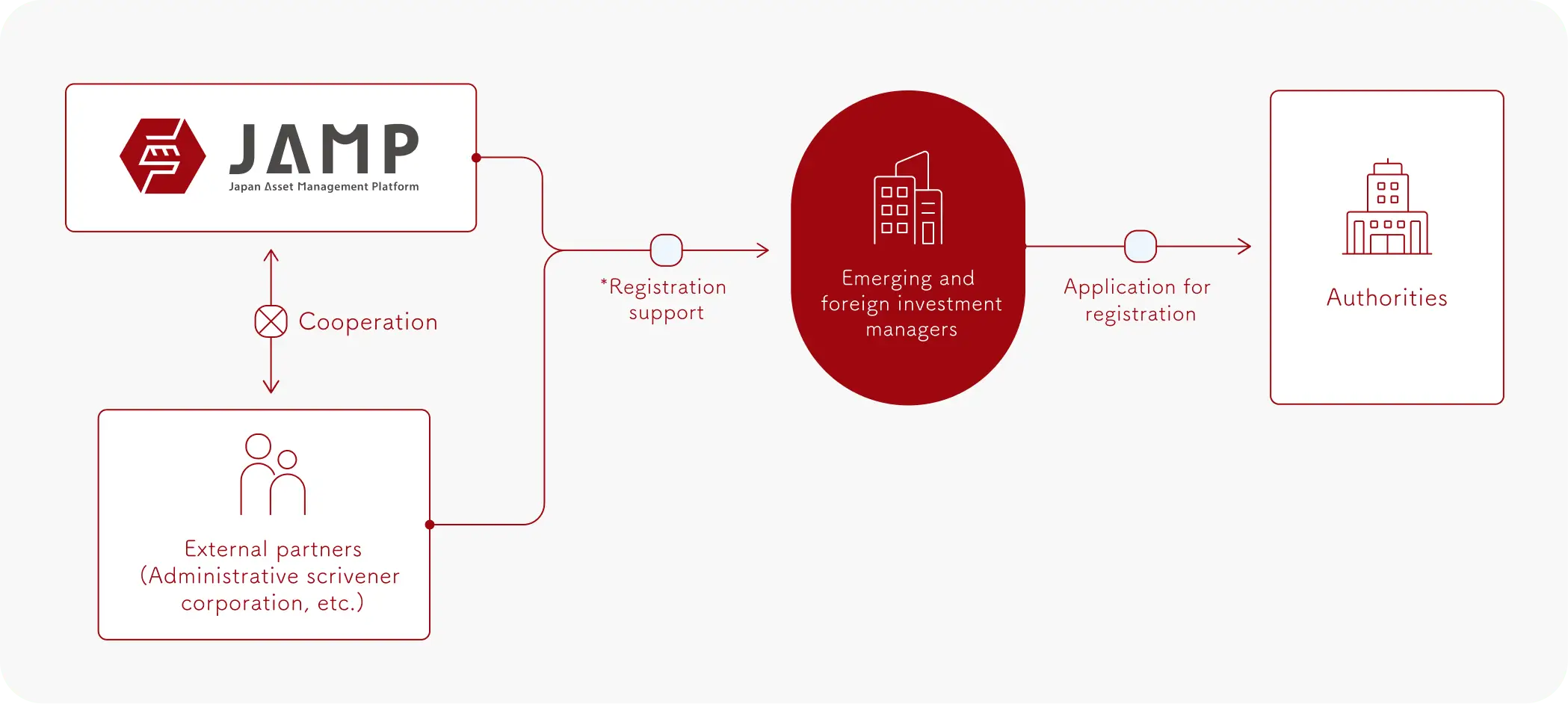 We also handle the registration for the "Investment Management Related Services" (voluntary registration), a system that commenced in May 2025. - What is Investment Management-Related Service Entrusted Business?This business category was established as part of the initiative to create an environment where Investment Management Business Operators can concentrate solely on investment management. This was implemented under the Plan for Realizing an Asset Management Nation, with the aim of promoting new entries into the asset management industry.