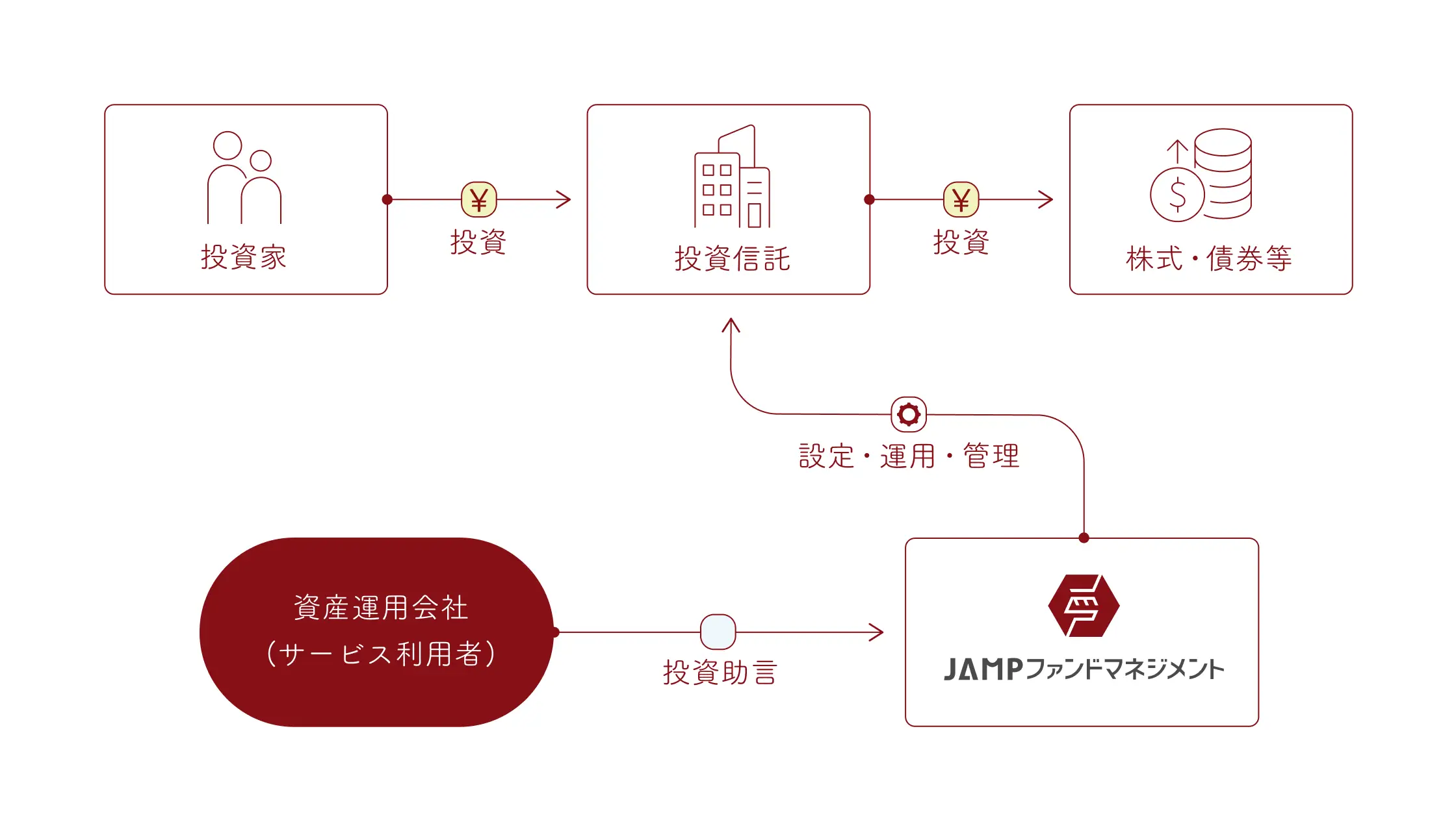 JAMPファンド・マネジメントは、投資信託の商品組成・設定・運用管理などを支援するホワイトレーベルサービスを提供しています。